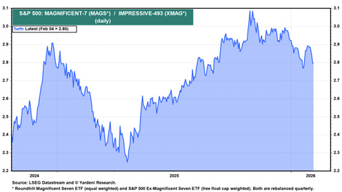 This is not an invitation to buy Walmart at a peak price of 45 times earnings. Rather, it is a very clear sign of how market leadership is changing in nature, a sign of how the market is beginning to reward the other 493 companies outside the Magnificent Seven, those that will benefit from the increase in productivity and efficiency made possible by artificial intelligence.