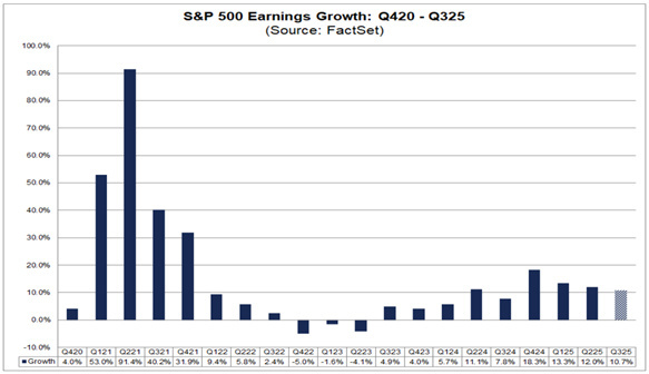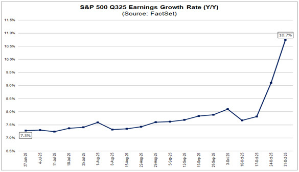 83% of companies are beating estimates, and the earnings growth rate for the S&P 500 in the third quarter rose from 9% to 10.7%.