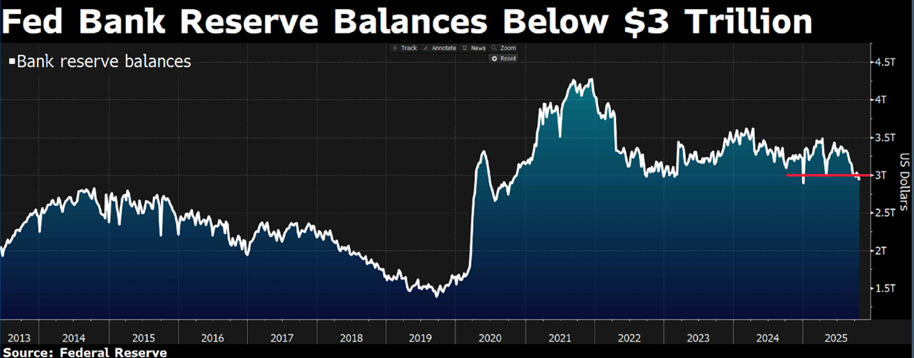 The Fed's balance sheet will end quantitative tightening, i.e., its reduction, on December 1, a sign that liquidity is an important issue and the Fed does not want to drain it further.