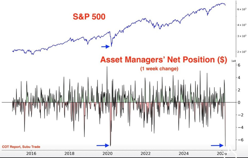 Questo storicamente è un segnale da non ignorare. Indicatori di sentiment come il Fear & Greed Index sono su livelli di paura estrema, i sondaggi sugli investitori mostrano una netta prevalenza di ribassisti, e l’esposizione degli asset manager è scesa ai minimi degli ultimi mesi, significa che gli investitori istituzionali hanno già venduto molto e sono già posizionati per scenari negativi.