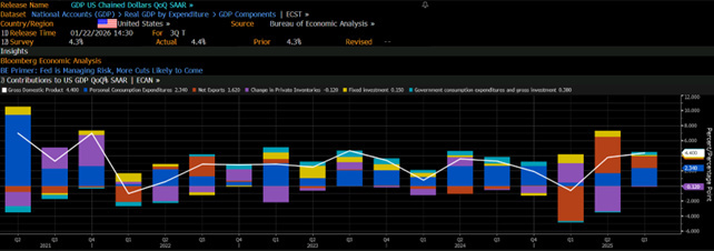 Dal punto di vista macro, i dati hanno continuato a descrivere un’economia statunitense resiliente. La crescita resta robusta con il PIL in crescita del 4.4%, i consumi tengono e il mercato del lavoro non mostra segnali di deterioramento improvviso.