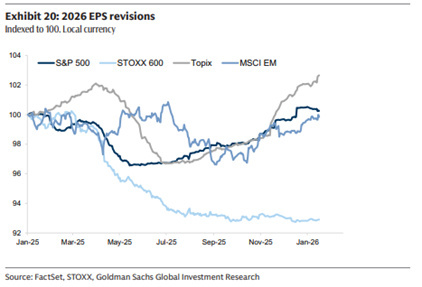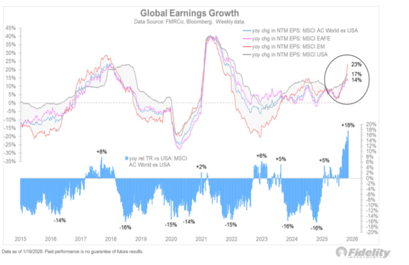 Non è un caso che, negli ultimi mesi, le azioni non statunitensi abbiano mostrato una forza tale da competere persino con asset tradizionalmente difensivi come l’oro. Quando gli utili accelerano, i prezzi tendono a seguire. È una relazione semplice, ma spesso dimenticata quando l’attenzione è concentrata solo su un mercato.