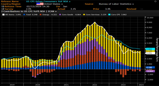 Equity markets are close to all-time highs, driven by an excellent reporting season in the technology sector and the growing prospects for the development of artificial intelligence. This trend persists despite US inflation data released this week showing a more resilient inflation rate than expected. In particular, Tuesday's CPI reported an inflation rate of 3.1 per cent, lower than the 3.4 per cent expected, but showing a less pronounced decline than expected. Furthermore, the core indicator, which excludes food and energy, remained in line with the previous month's rate. Nvidia data are awaited to further assess market developments.