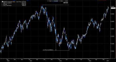 Let us start with a historical example and do so by analysing the technology sector, which is now the talk of the town. In 2022, the technology sector underwent a correction of about 40%, justified by the market with the narrative of rising interest rates.