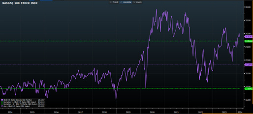 If, however, we confine ourselves to value analysis, we note that Nasdaq valuations had reached about 30 times earnings by the end of 2021, a level never seen in the history of the index, with the market pendulum thus having swung into an upward excess. This upward excess was reversed in 2022, leading to violent corrections across the technology sector and valuations at an objective discount to history.