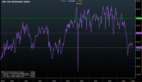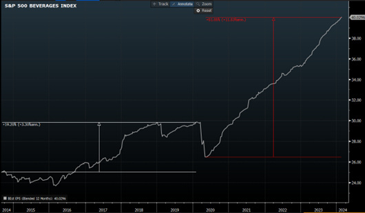 Let us now turn to an example from the present, and we do so by analysing the non-discretionary consumption sector, and in particular the sub-sector of alcoholic and non-alcoholic beverages.