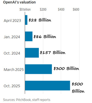 Stando ai dati più recenti, OpenAI ha siglato accordi per oltre 1.000 miliardi di dollari in infrastrutture e chip, pur non essendo ancora profittevole. La sua valutazione ha toccato i 500 miliardi, che, se fosse quotata, la renderebbero la 16ª più grande società dello S&P 500.