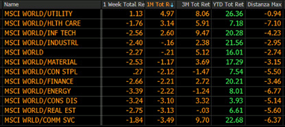 E proprio parlando di correzioni, venerdì pomeriggio è arrivato a sorpresa un liberation day 2.0 con un tweet di Donald Trump che ha scosso i mercati. L’ex presidente ha annunciato l’intenzione di introdurre dazi del 100% sulla Cina a partire dal 1° novembre, come risposta alle restrizioni cinesi sulle esportazioni di terre rare. La reazione è stata immediata e le vendite diffuse su tutto il listino, con l’S&P 500 in calo del -3%, il Nasdaq -3,5%. A livello settimanale, l’S&P ha chiuso a -2,4%, con i settori più difensivi come utilities e consumer staples unici a resistere.