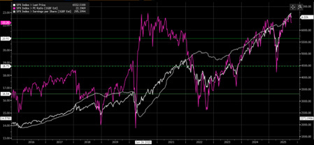 Ma per il momento, questa macchina continua a macinare risultati e tutto questo entusiasmo si riflette in una marcata espansione dei multipli con il rapporto prezzo utili dell’S&P 500 arrivato a 23x volte gli utili attesi a 12 mesi, il massimo da inizio 2000, mentre il dividend yield è sceso all’1,17%, il minimo dal picco della bolla dotcom.